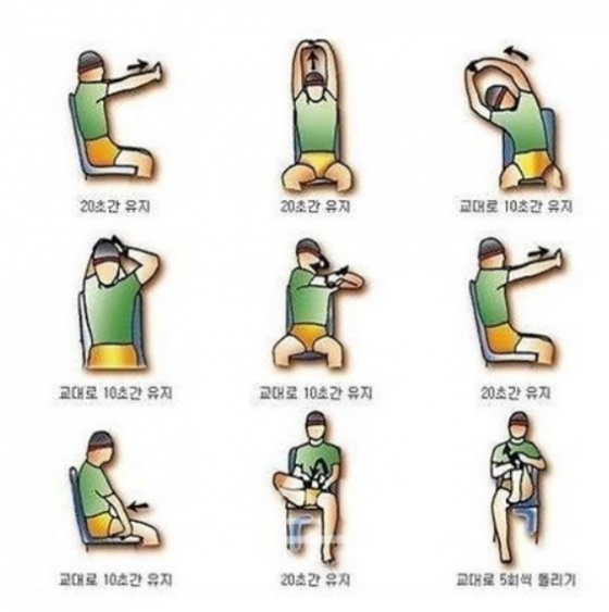 허리를 펴고 턱을 당깁니다. 어깨는 이완합니다. 가슴을 펴고 손바닥을 바깥방법으로 더디게 돌려준답니다. 숨을 들이 마시고 중지된 후 더디게 내쉽니다. 앉아서 일하는 시간이 길어질때 2~3회 실시 하더라고요.
