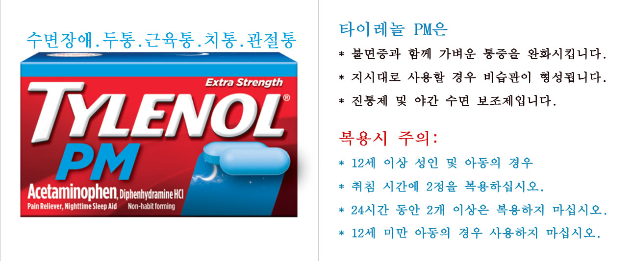 이런 이유로 인해 많은 분들이 잠자리에 들기 전 타이레놀을 복용하여 보다 편안한 수면을 얻고 계십니다. 하지만 수면 장애가 지속될 경우에는 전문적인 상담을 받으시는 것이 바람직합니다.