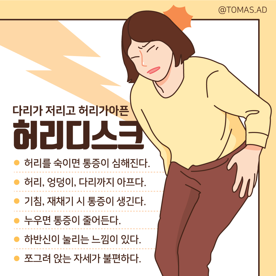 허리디스크증상은 다음과 같은 10가지 주요 증상으로 나눌 수 있습니다.